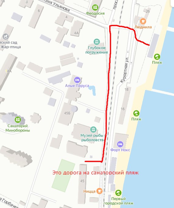 #139Вася Ветров, премного благодарен за схемы-карты (уже не в первый раз).QR_BBPOST Свой работает с 7 утра, ближняя калитка тоже, от калитки нужно пройтись немного в горку, градусов 15, до санаторного пляжа конкретно 350 м. Калитка рядом с 5-этажным корпусом. От 12-этажного до калитки еще 170 м.