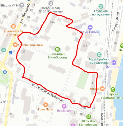 1. Я на яндекс-картах не мог оценить, где территория санатория, если можно, очертите).