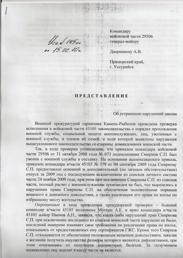 вОТ ВЫНЕСЕННОЕ ПРОКУРОРОМ ПРЕДСТАВЛЕНИЕ НА ИМЯ КОМАНДАРМА.