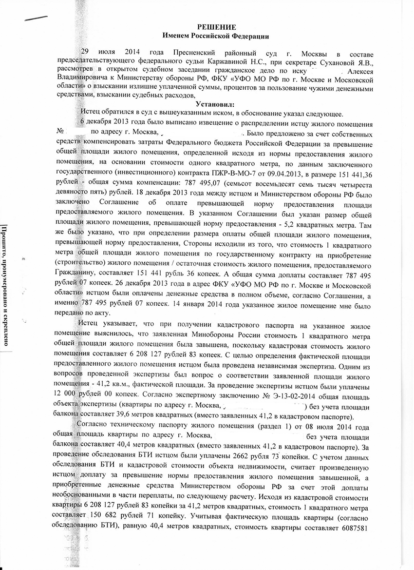 Я в процессе, судье предложил спуститься на 2 этажа ниже и спросить о реальном происхождении этих квартир и почему они были пожертвованы МО, у компетентного лица - тов. Васильевой, которую там в это же время судят, но судья лишь улыбнулась в ответ...