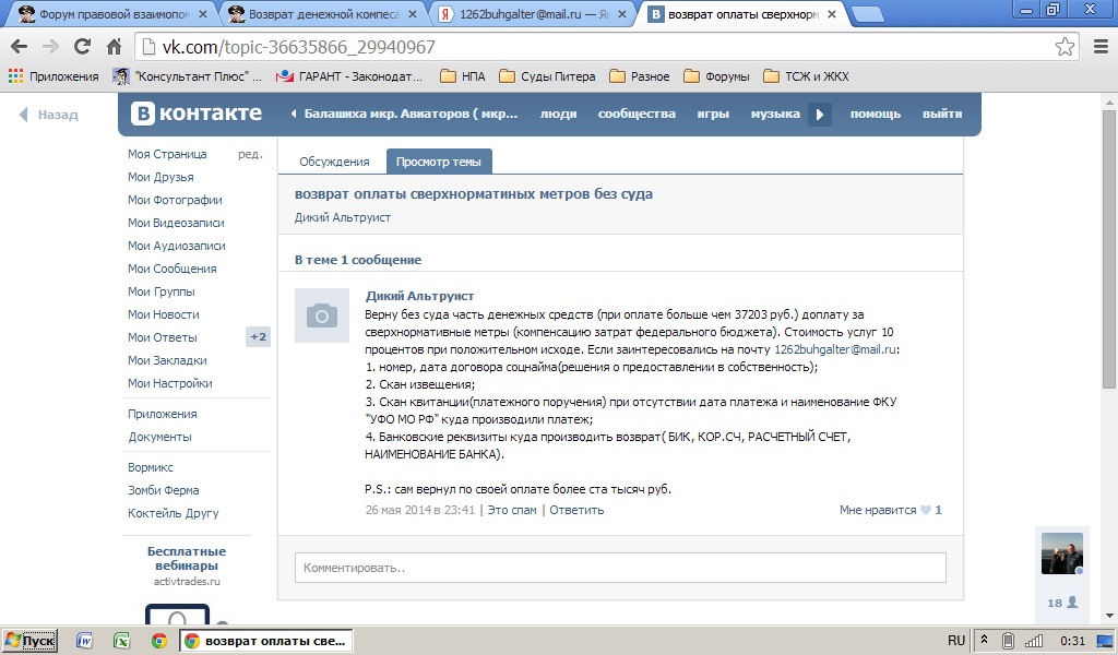 Эта тема и есть подтверждение того, что просто так написав претензию возврат не осуществить. Читал Ваши посты на ином форуме, скрины не делал, незачем, но тема при Вашем законной не коррупционной возможности, как то не...ммм...внушает доверия. Опять же подтверждение - наличие этой темы. Особенно вызывает сомнение адрес майла указанный Вами, что дает основание предположить наличие связей в данных кругах, которые связаны с бюджетными средствами МО РФ.