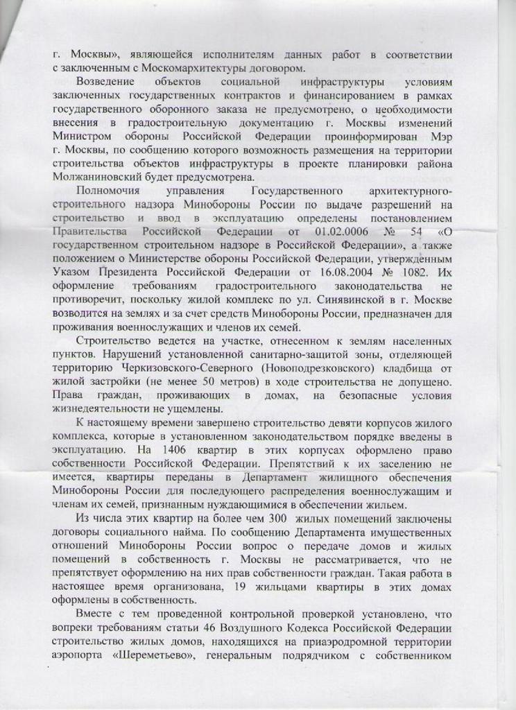 Почему у многих возникали и возникают сомнения, что дома передадут в собственность Москвы? Как я заметил, все, что строилось по заказу МО РФ в регионах РФ для постоянного проживания очередников ВС, передавалось городам после полного исполнения гос.контрактов застройщиками. У нас что, другой случай? Наверное, о проблеме можно будет говорить лишь тогда, когда полностью застроят МЛЖ согласно ген.плана и будет ясно, что гос.заказ выполнен...