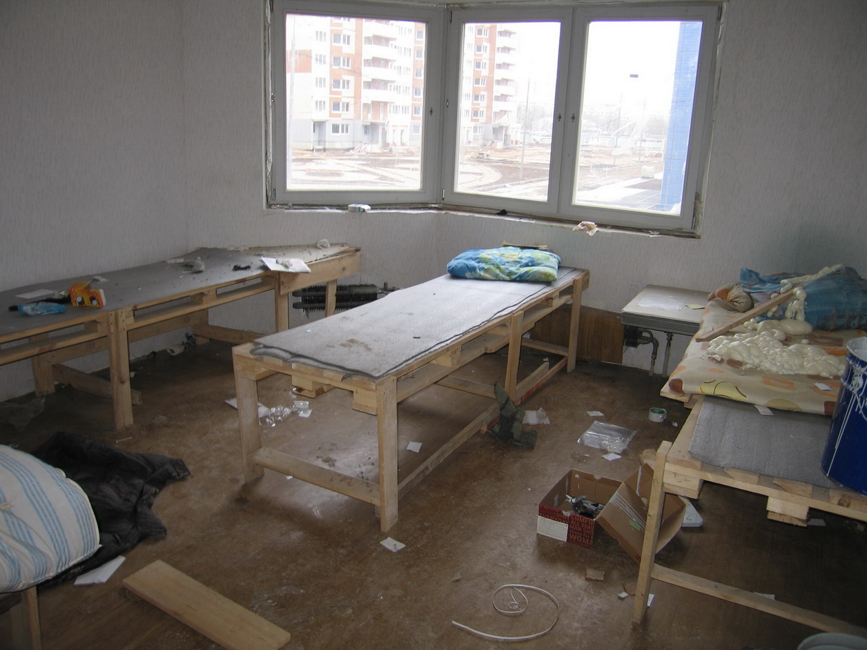 -появились двери...местами отдельно от коробки, а местами уже были демонтированы с помощью ног, кувалд и просто твердыми предметами с тупыми и не только концами (в одной из квартир был клуб любителей дартс электродами);