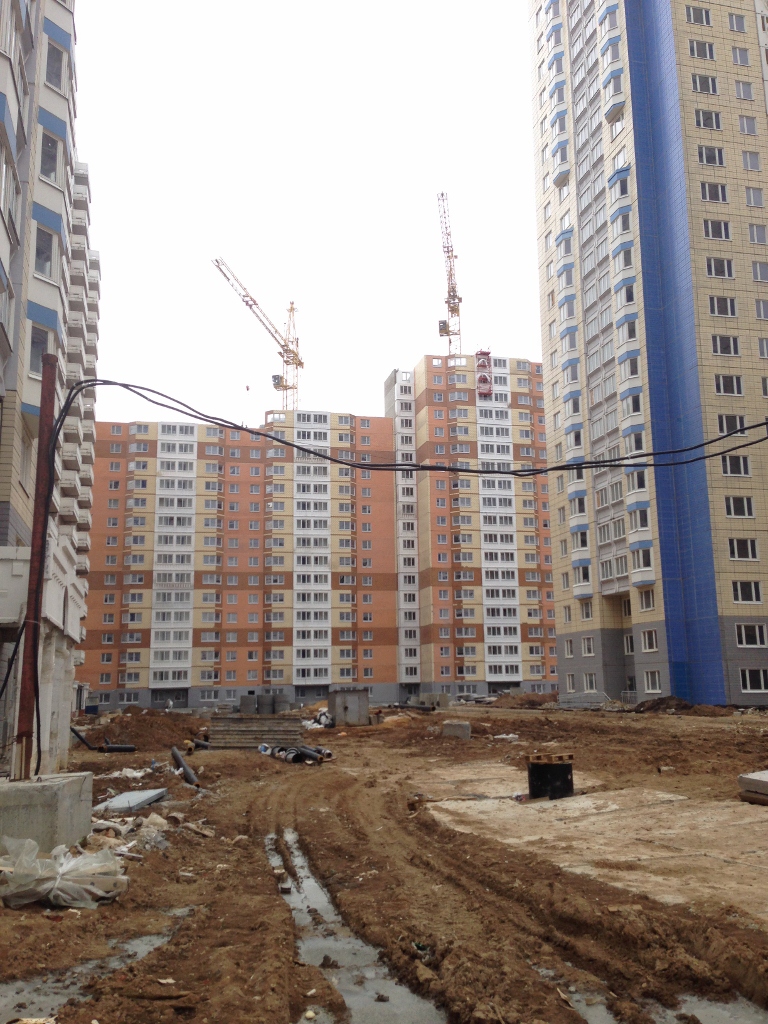 12 корпус строят, проводится монтаж и заделывают швы, работали оба крана.