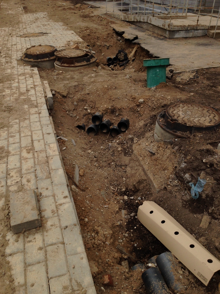 Канализация- копают колодцы,у 19 корпуса. Поверьте, это не совсем простое занятие . Оба колодца еще немного нужно углублять.