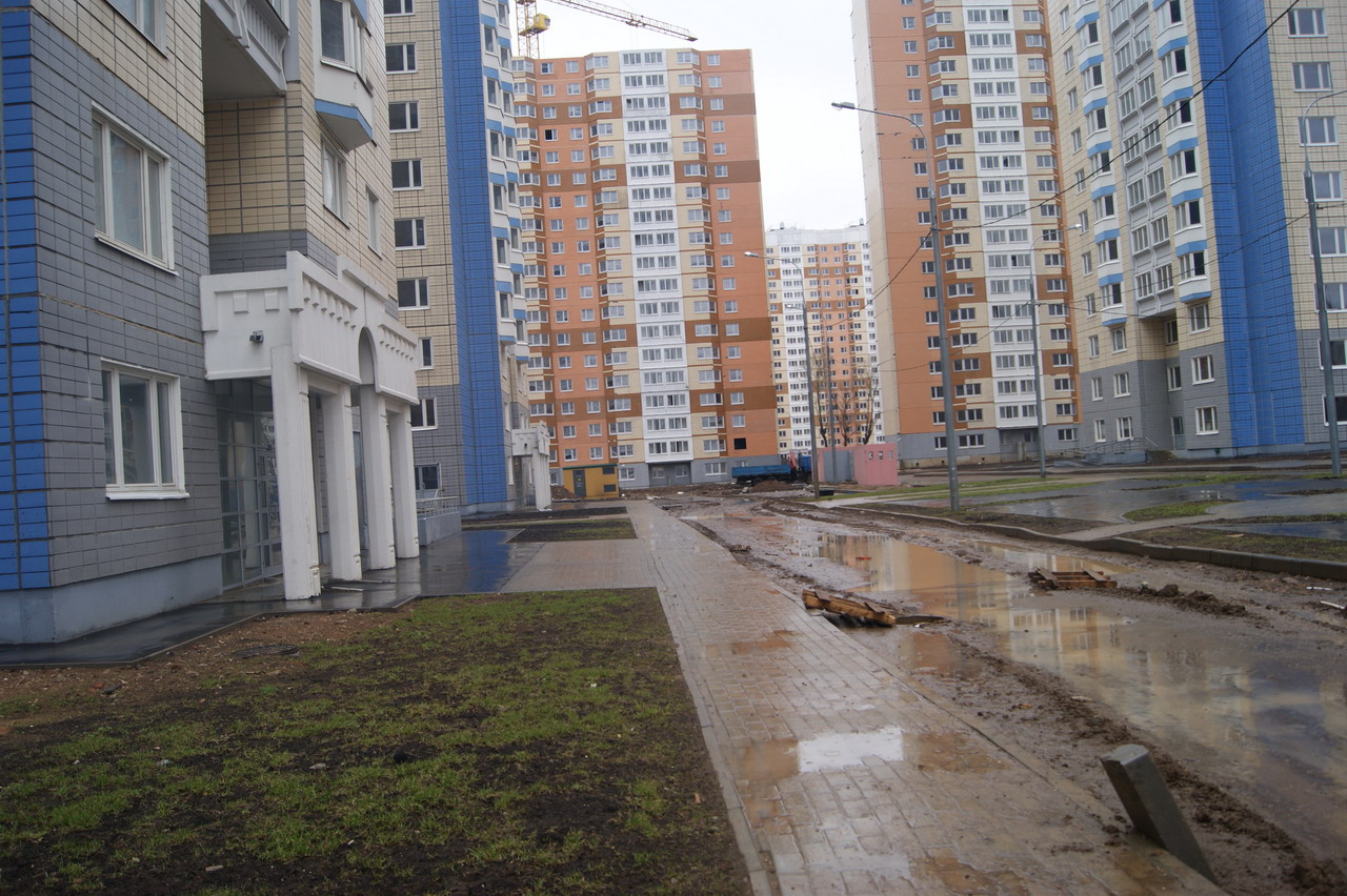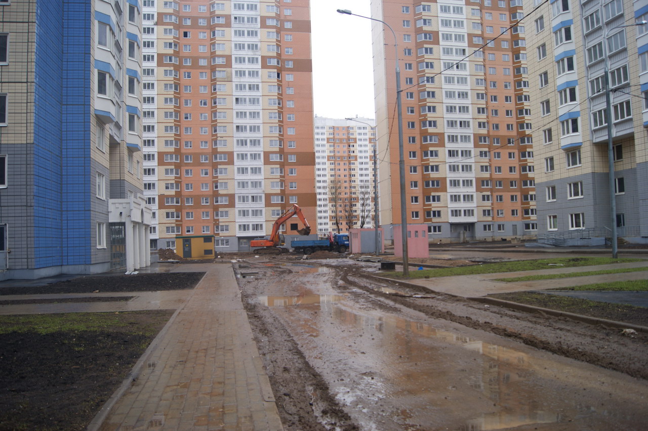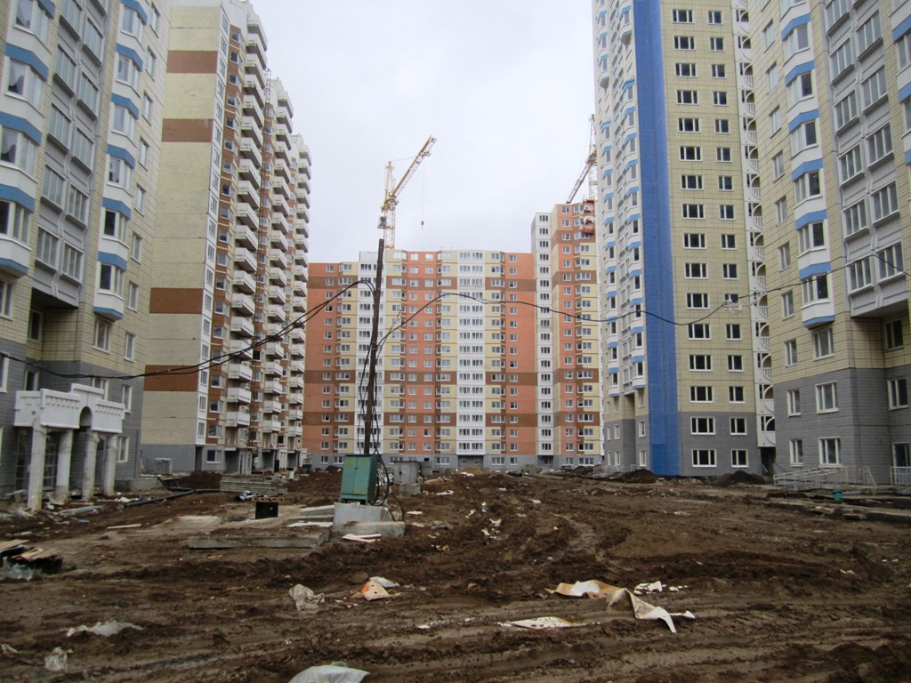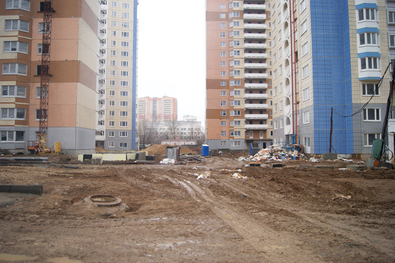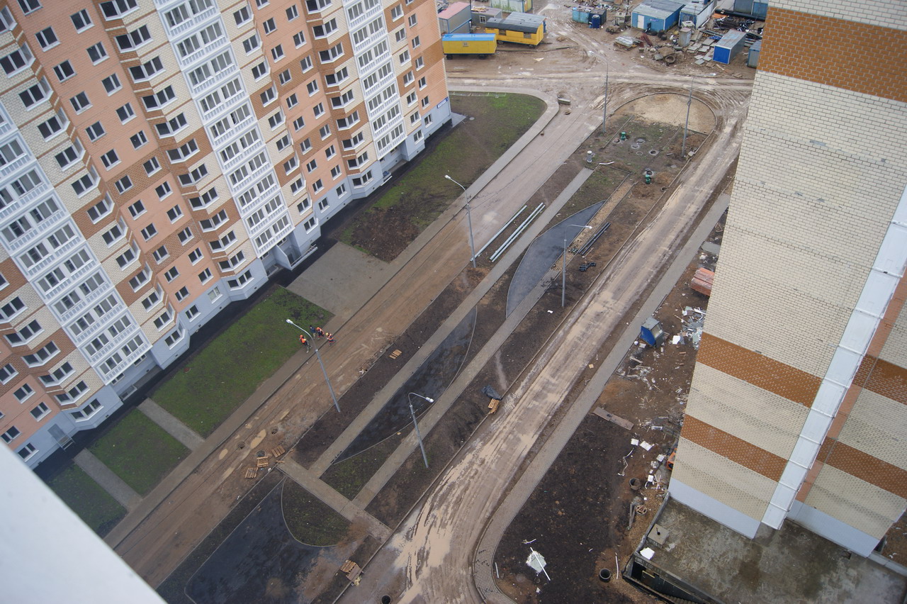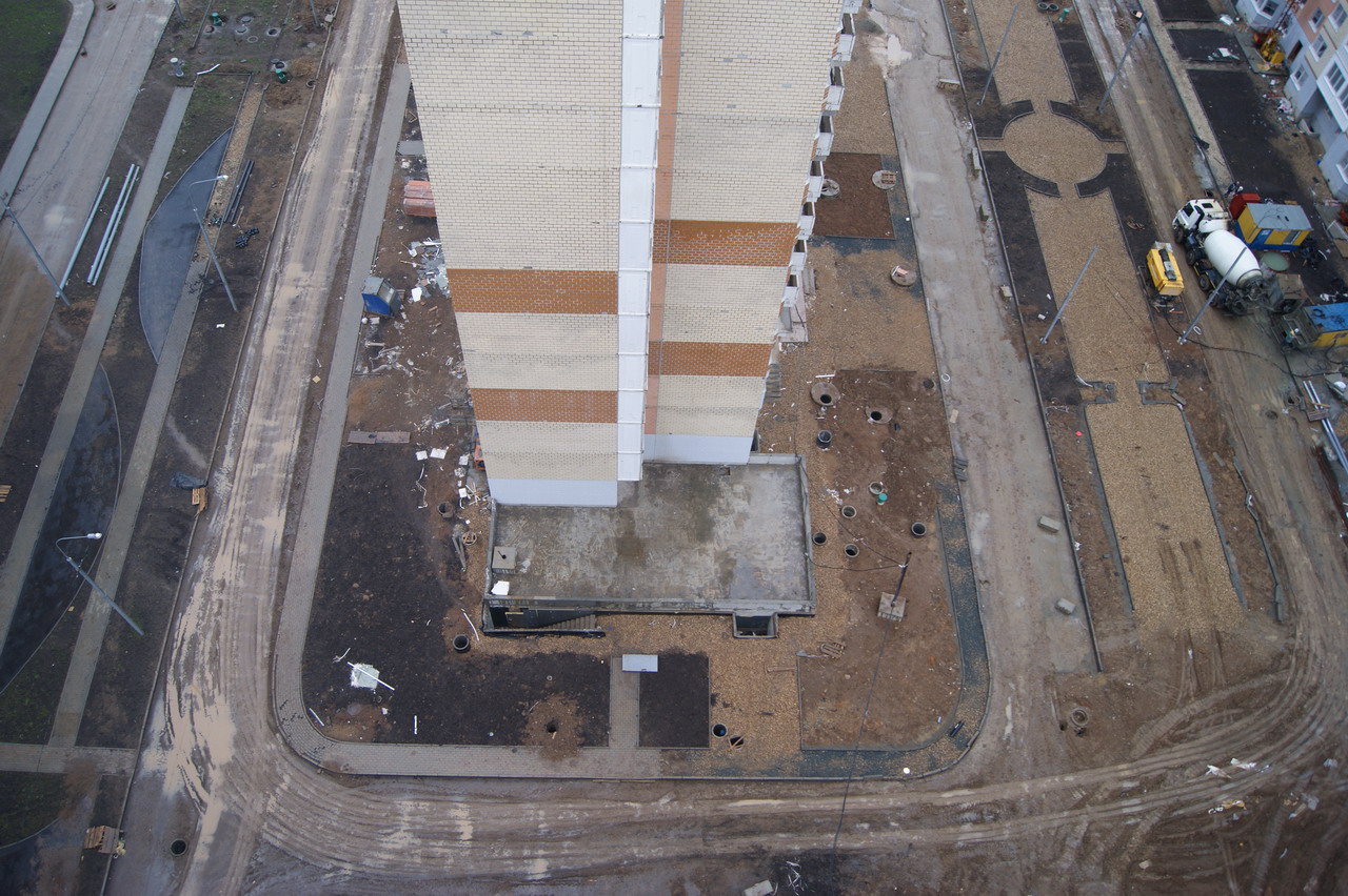 Вчера посетили стройку. Ключница дала ключ от корпуса (у нас 18 корпус башня) со словами "Идите смотрите", время не лимитировала. На 18 этаж пешком забирались, корпус обесточен, воды и отопления нет. На вопрос о сроках сдачи мкр пожимание плечами. Видели несколько бредущих работяг, между корпусами елозит экскаватор, зашла одна бетономешалка, грязи хватает (как раз шел дождь).