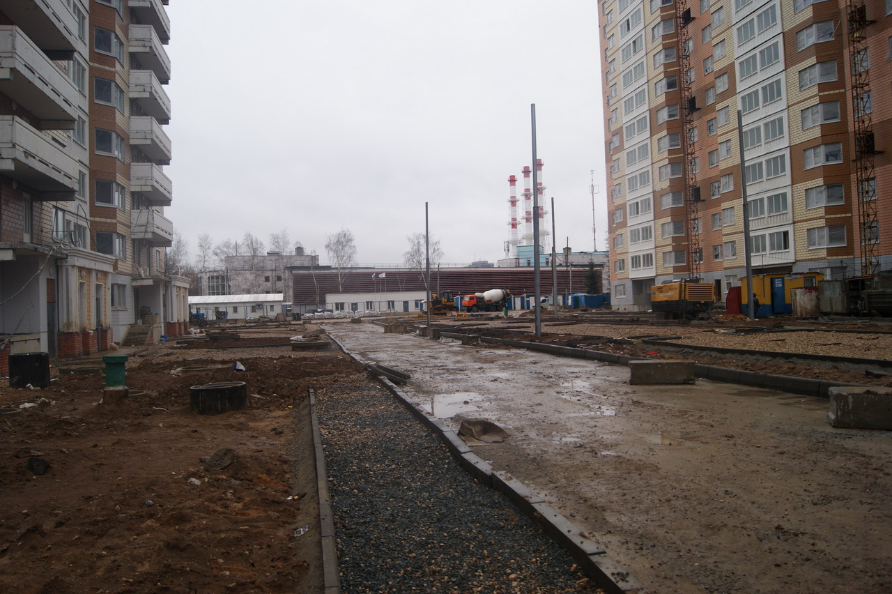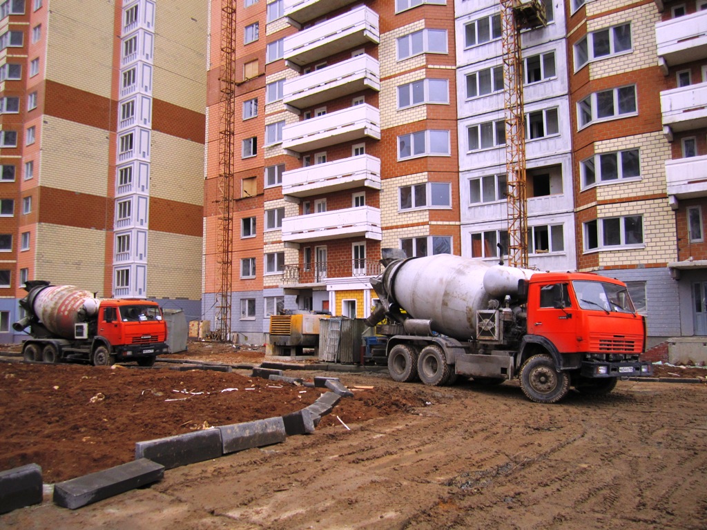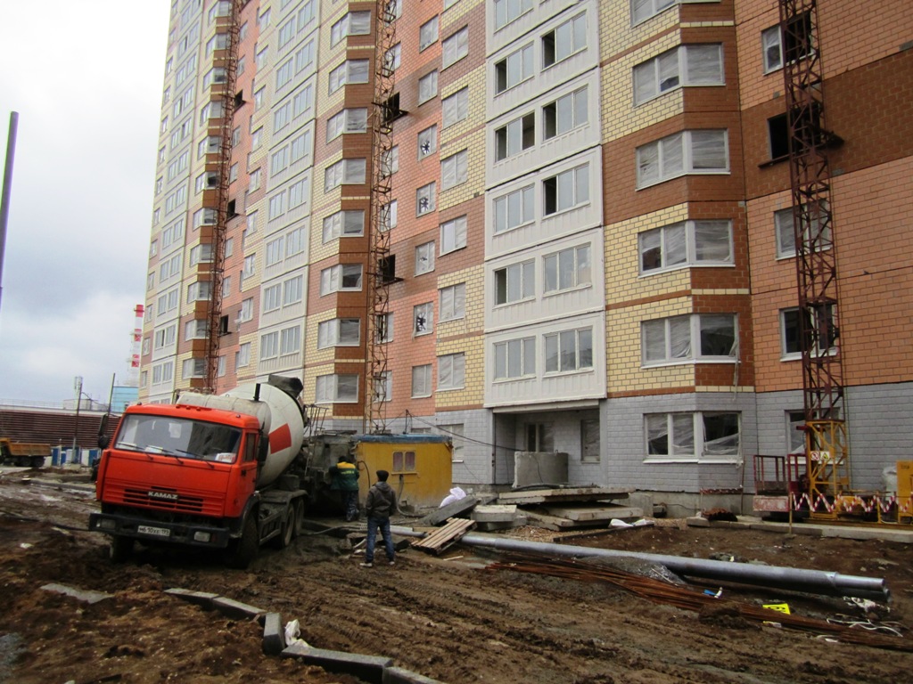 У 4-го и 21-го корпусов работали миксеры, вероятно заливали стяжку.