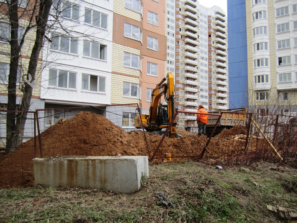 У 19-го корпуса продолжают углублять канализационные колодцы.