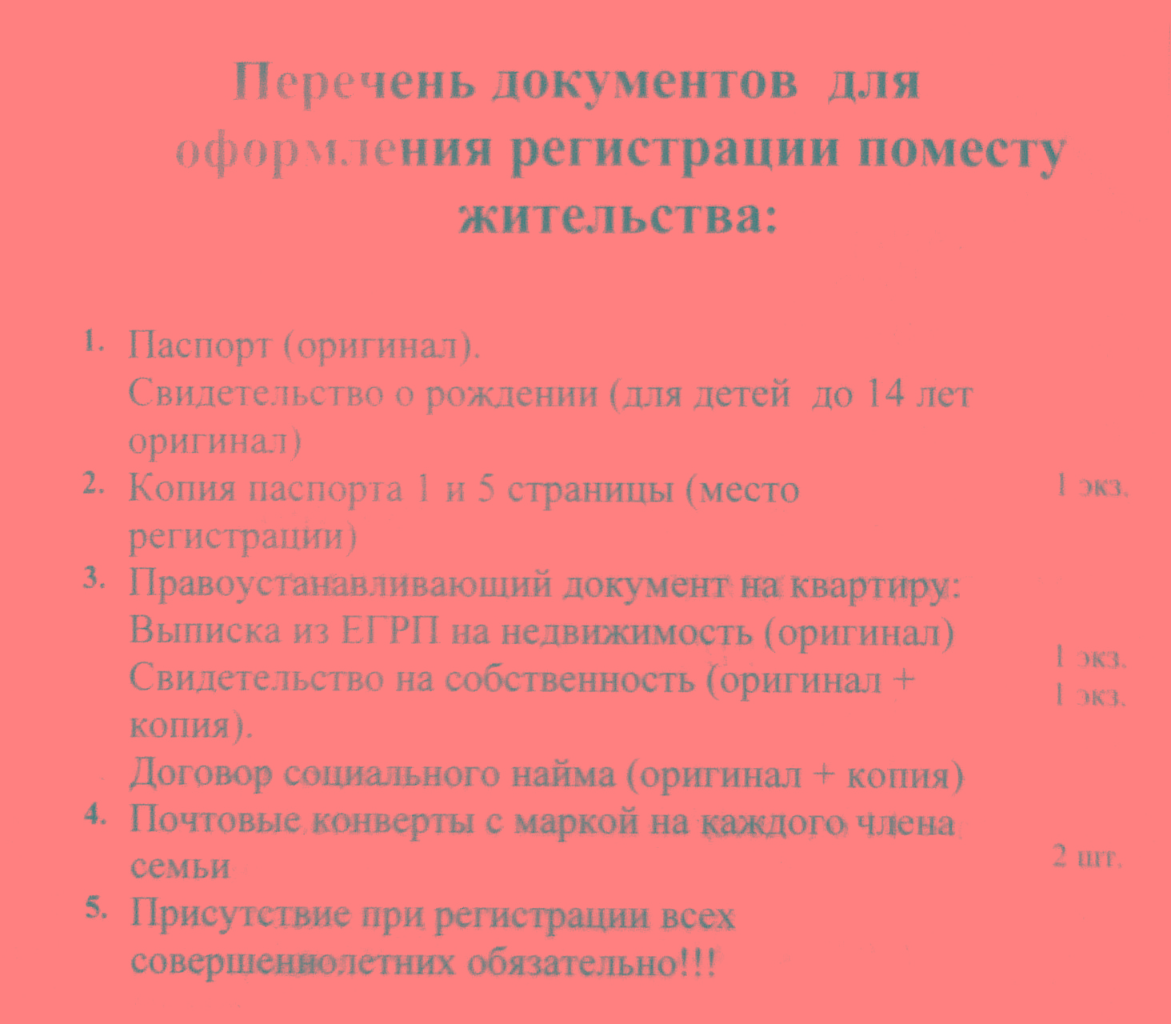 #12527Вот такие документы требуется подать - без них паспортистка согласно её инструкции даже рассматривать заявление о регистрации не будет.QR_BBPOST Нормой закона предусмотрена подача для регистрации документа