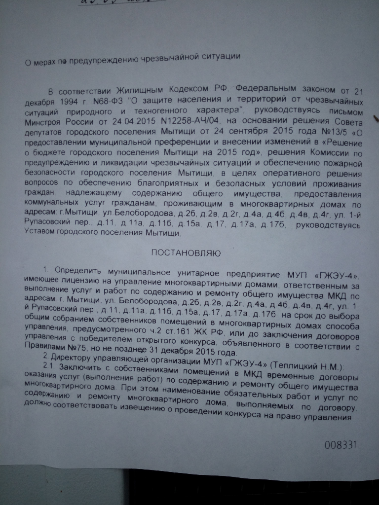 QR_BBPOST в связи с фактическим не предоставлением обязательных услуг и отсутствием фактического обслуживания жилых домов управляющей компанией решением руководителя ОМСУ г.п. Мытищи в отношении микрорайона 25 «А» введена чрезвычайная ситуация (положение).