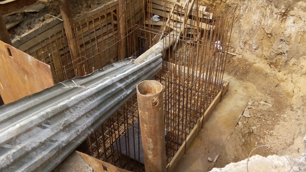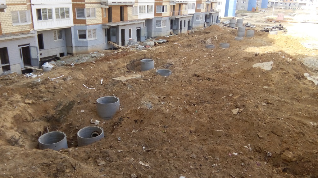 Колодец рядом с 24-м, сделано армирование, но стенок для заливки пока нет.