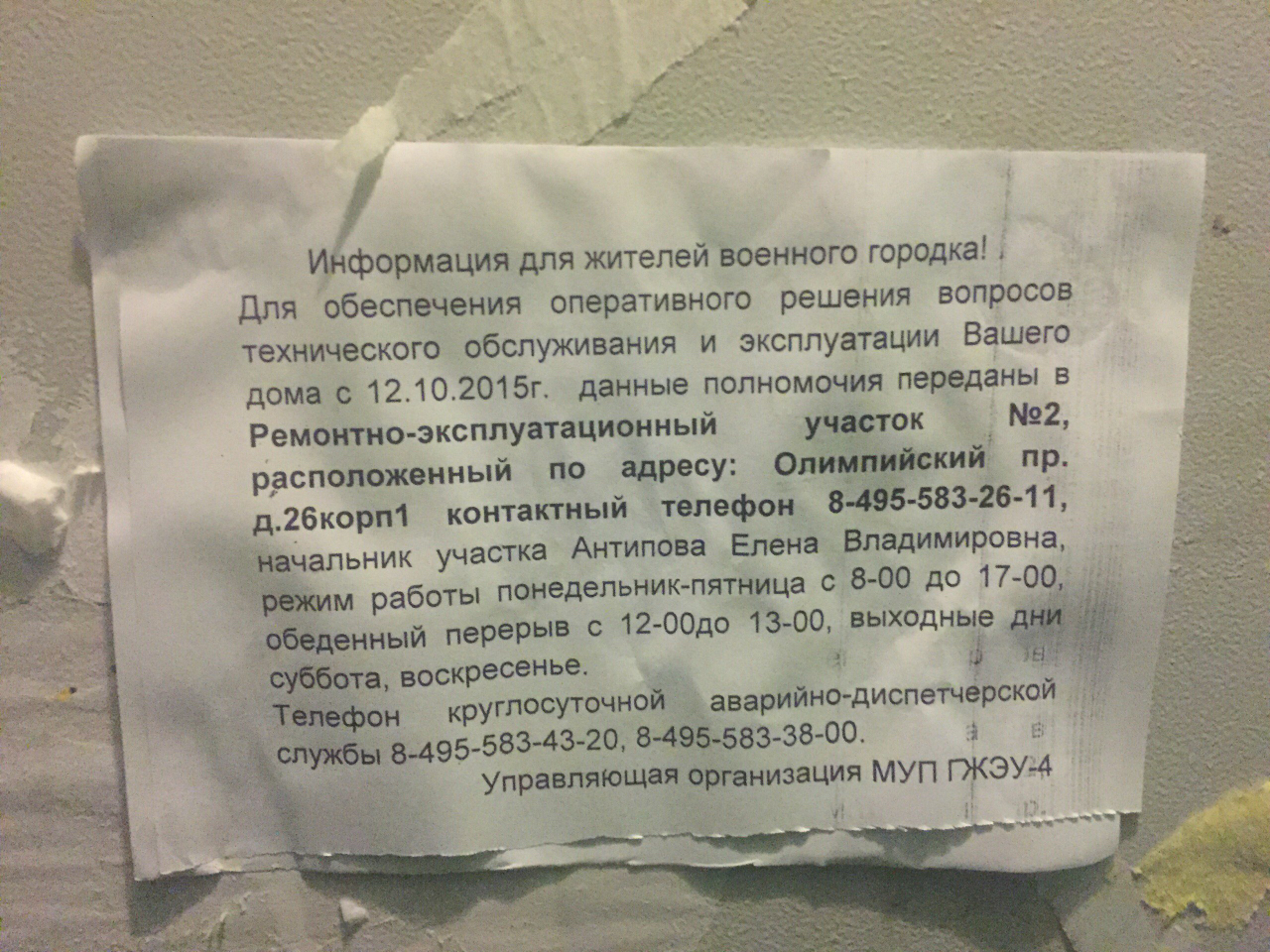 Вопрос к Министерству ЖКХ напрямую не относится. Однако, можем пояснить ситуацию следующим образом.В целях обеспечения благоприятных и безопасных условий проживания граждан, надлежащего содержания и использования общего имущества МКД, а также предоставления коммунальных услуг, комиссией по чрезвычайным ситуациям администрации городского поселения Мытищи принято решение о назначении временной управляющей организации МУП «ГЖЭУ-4». К сожалению действия местной администрации, не нашли поддержки в военной прокуратуре Солнечногорска, вопрос законности был урегулирован только 09.10.2015.