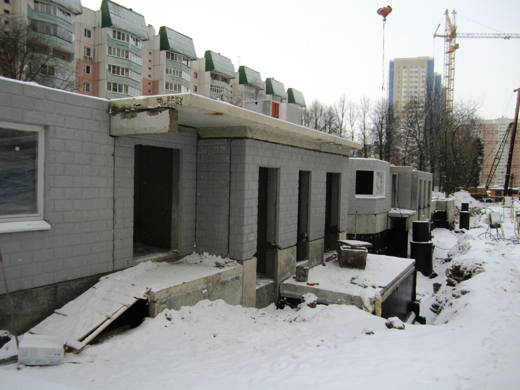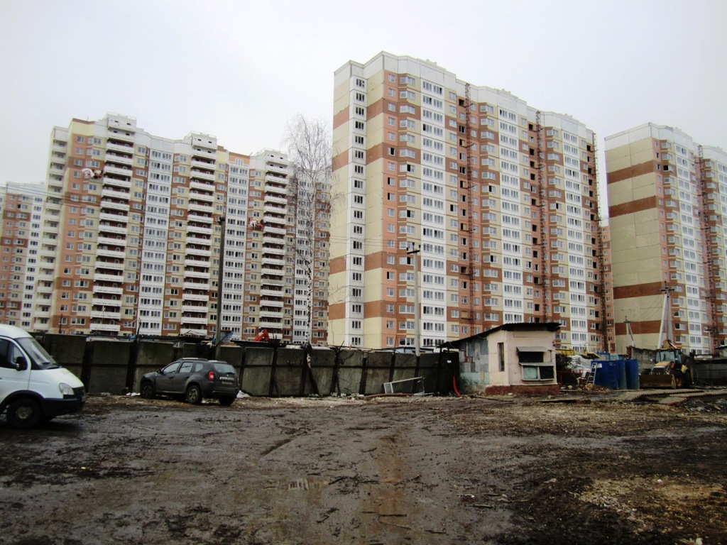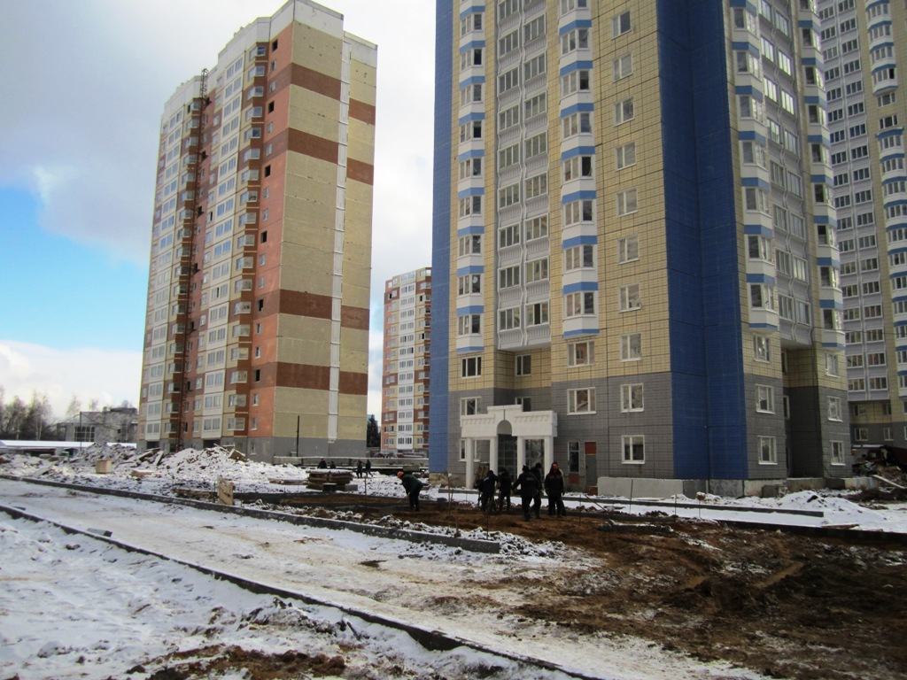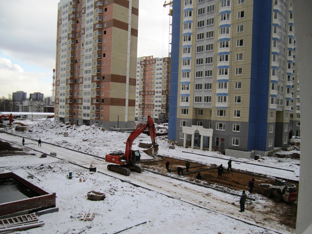 Растут и корпуса: 1-й - 4 подъезда до 7-и этажей, 19-й - 1-й этаж, 21-й - 15-й этаж. На 19-м корпусе работы ведутся только днем.