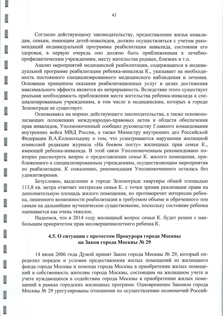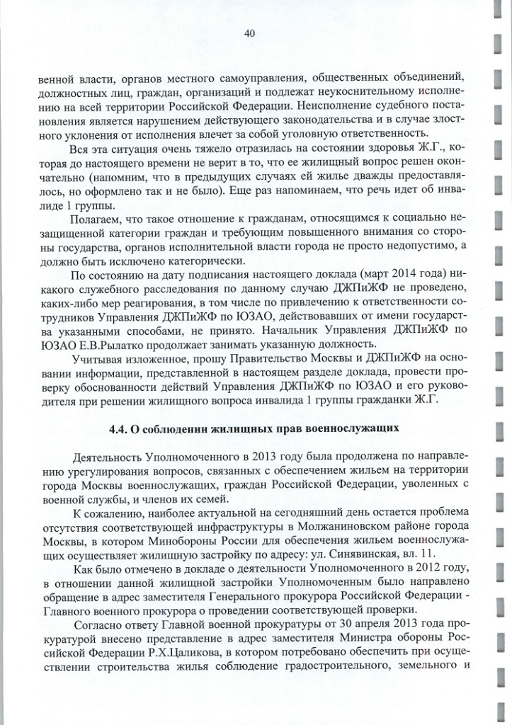 не знаю, может кто и знаком с докладом Уполномоченного по правам человека в г.Москве Музыкантского А.И., но прикреплю на всякий случай его доклад в части, касающейся прав обеспечения жильем военнослужащих. Сам доклад под 300 страниц, но про военных он не забыл