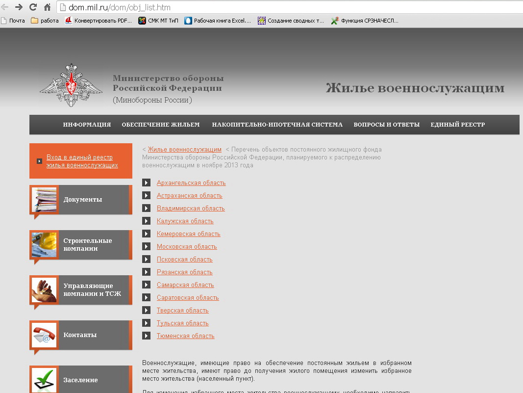 С сайта МО РФ - количество областей, где есть жилье, значительно сократилось.