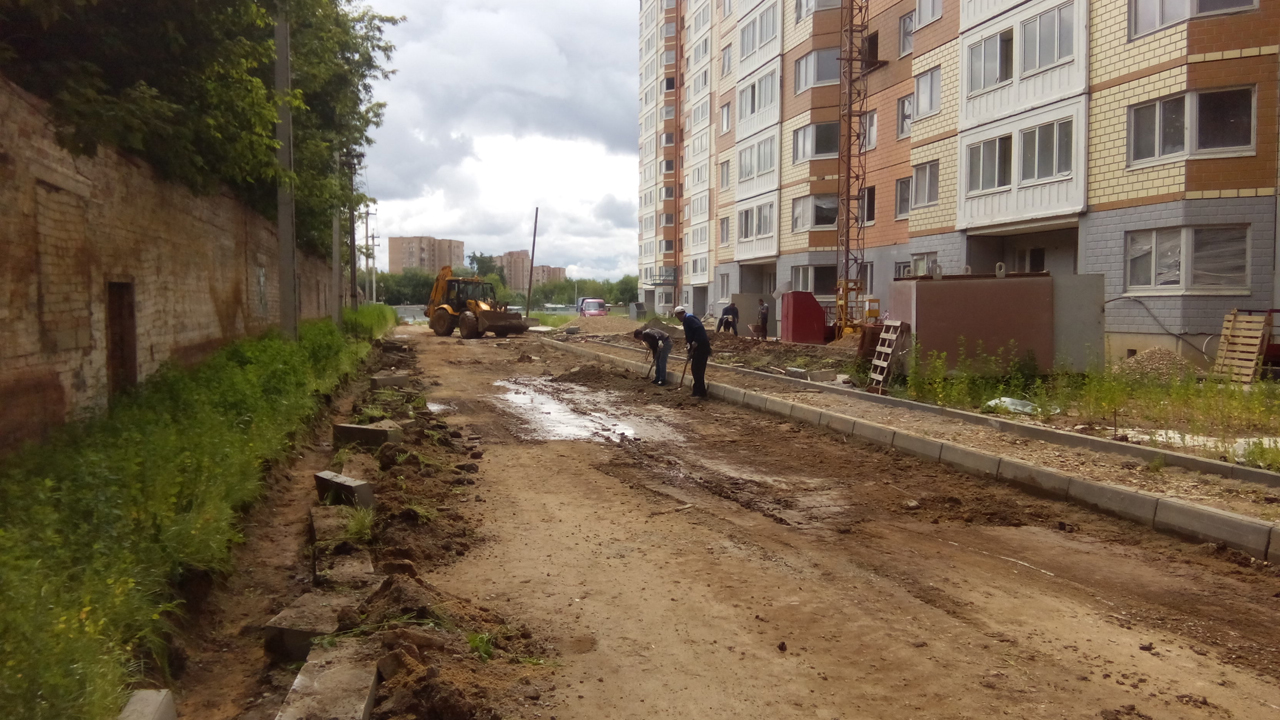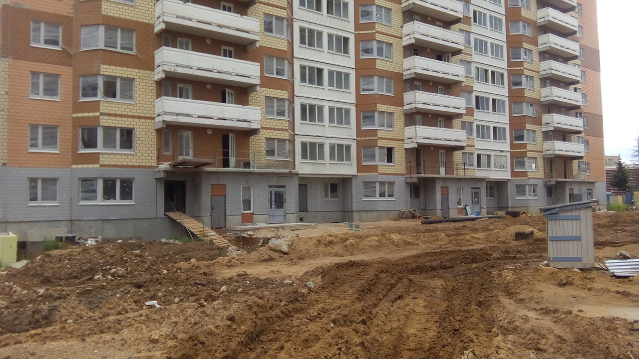 Я бы выразился иначе, "очень вялые работы".На данный момент ведутся внутренние работы в домах, а также работы по внешней территории (где-то канализация, освещение, дороги и тротуары - бордюры, асфальт и плитка).