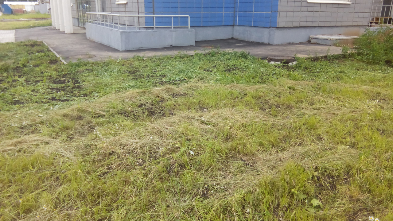 Трава рядом с 10, 11, 14 и 18 корпусами скошена, но рядом с другими корпусами она по пояс.