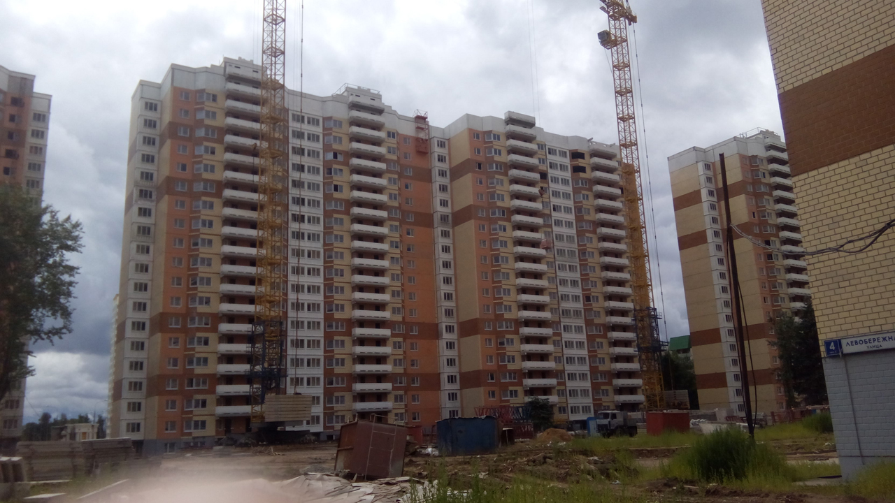 3 и 4 подъезды. Строят тех. этаж. Кран работает.