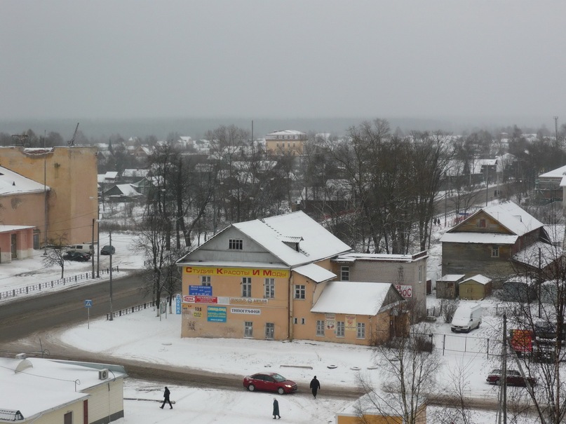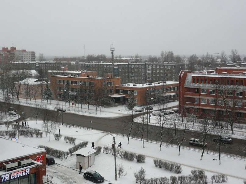 вид с моста на въезде в г. Тосно на микрорайон, 05.01.2012 г. ( ваш дом за кирпичной высоткой в направлении башенного крана)