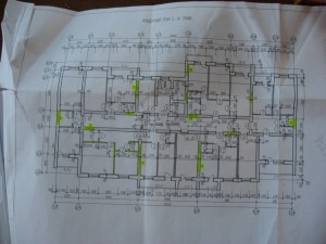 Сегодня заезжал по случаю на строительную площадку 2-го микрорайона ВОЛГАРЬ, выкладываю, что заснял: работы кипят полным ходом!!! Удалось сфоткать планировки. Не обессудьте, как мог... Метража на плане нет, но можно при желании посчитать. Жёлтым цветом отмечены вентиляционные шахты - для кухонь и санузлов. Внутри разводят электрику, на нижних этажах стеклят окна. Сразу огорчу ждущих однокомнатные (также, как и я) - их там нет. Все секции однотипные: на этаже две трёшки по торцам и одна слева внизу и две двушки друг напротив друга.