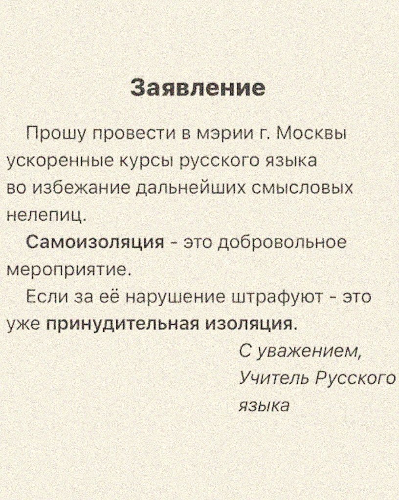 Чиновники пишут указы, используя термин "самоизоляция" - типа, вы ж сами изолировались :evil: То ли глупые чиновники, не понимают значения слов русского языка, то ли пытаются намудрить, запутать, сделать видимость законности