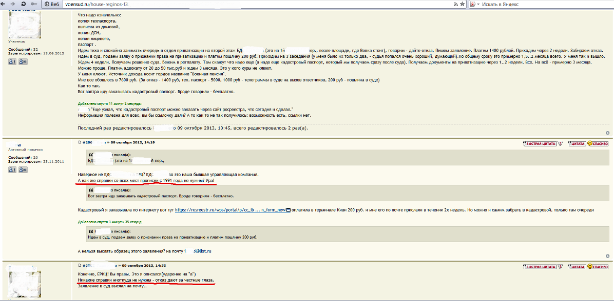Форум это конечно хорошо - но вот соседи уже прошедшие участие в приватизации через местный суд - это основная информация!!! только соседи дадут вам ясность - так что знакомьтесь со своими соседями.