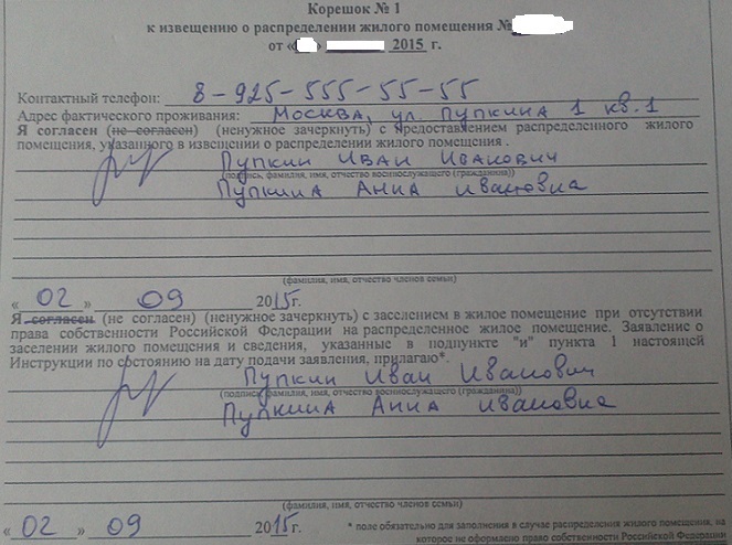 Согласен,так и заполнил.Я всех вписывал. На сколько человек Извещение, столько и вписываете. Подпись ставит только в/с и перечисление ч.с.в.QR_BBPOST Совсем забыл спросить.А если есть несовершеннолетние дети? Их тоже вписывать?Или только себя и жену?