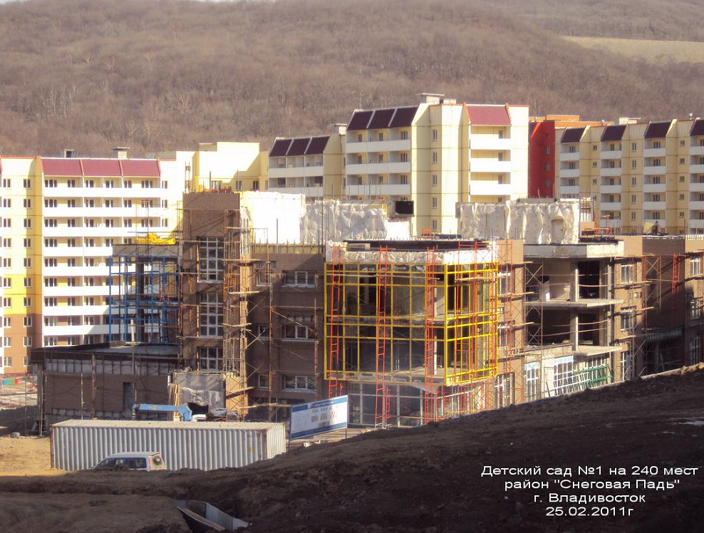 Садик и школа, единственные два объекта, на которых в этот день и час кипела работа. Если увидеть садик в ближайшее время есть, то вот школу вряд ли. ФотоОтчет по Садику и школе прилагаю здесь http://www.naflote.ru/group/372/photo/album/3889/. Оцените шансы сами. Кажись в Питере в новом микрорайоне для военных пенсионеров тоже строительство садиков и школ запаздывает. Аргумент строителей "Ну они же пенсионеры. У них дети взрослые наверно."