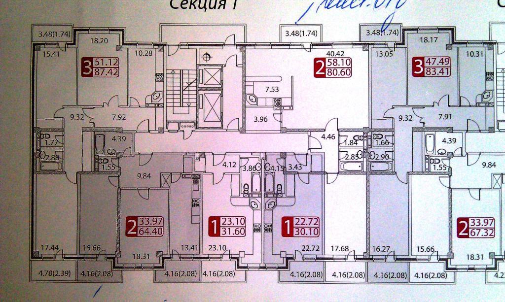 Пришлось смотреть трешку надо мной: нормальное расположение (схему приложил), ремонт простенький (см. пост выше), но тут действительно не важно, думаю все обои переклеивают и делают под себя. 83 метра - это, видимо, с балконами, у меня в извещении 79 метров указано, а на схеме больше (обращаю внимание: на схеме угловая трешка больше, чем во внутренних секциях!). Дома достаточно тепло (или на контрасте с улицы казалось). Соседи уже живут и установили двери на лестничную площадку, и закрыли их на замок, так что попасть в квартиру, не встретив соседа, может оказаться непросто.