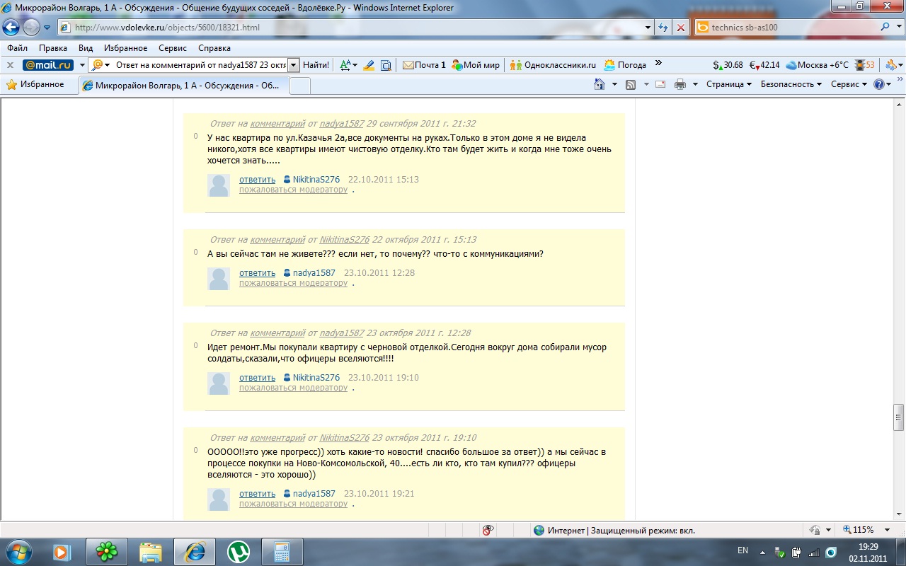 Уважаемый ОГМО, подскажите!!! Что слышно про 19 корпус??? Есть те,кто заключил ДСН и как они это сделали в ТС???? ИЛИ где??? Приказ на ОУ от 30.08.2011г. в ТС,но к приказу нет,как они говорят,поквартирного приложения!!!!!!!! Где его взять??? А люди с регионов,в частности с Дальнего востока уже заключили ДСН на наш дом,парадокс,в регионах все быстрее,выходит,а у нас затягивают??? Очень надеюсь,что найдутся грамотные люди,которые подскажут по этой проблеме РЕШЕНИЕ....очень надо!!!