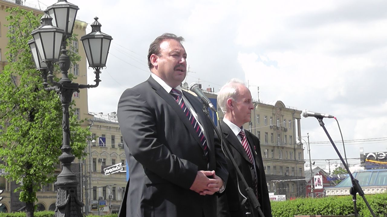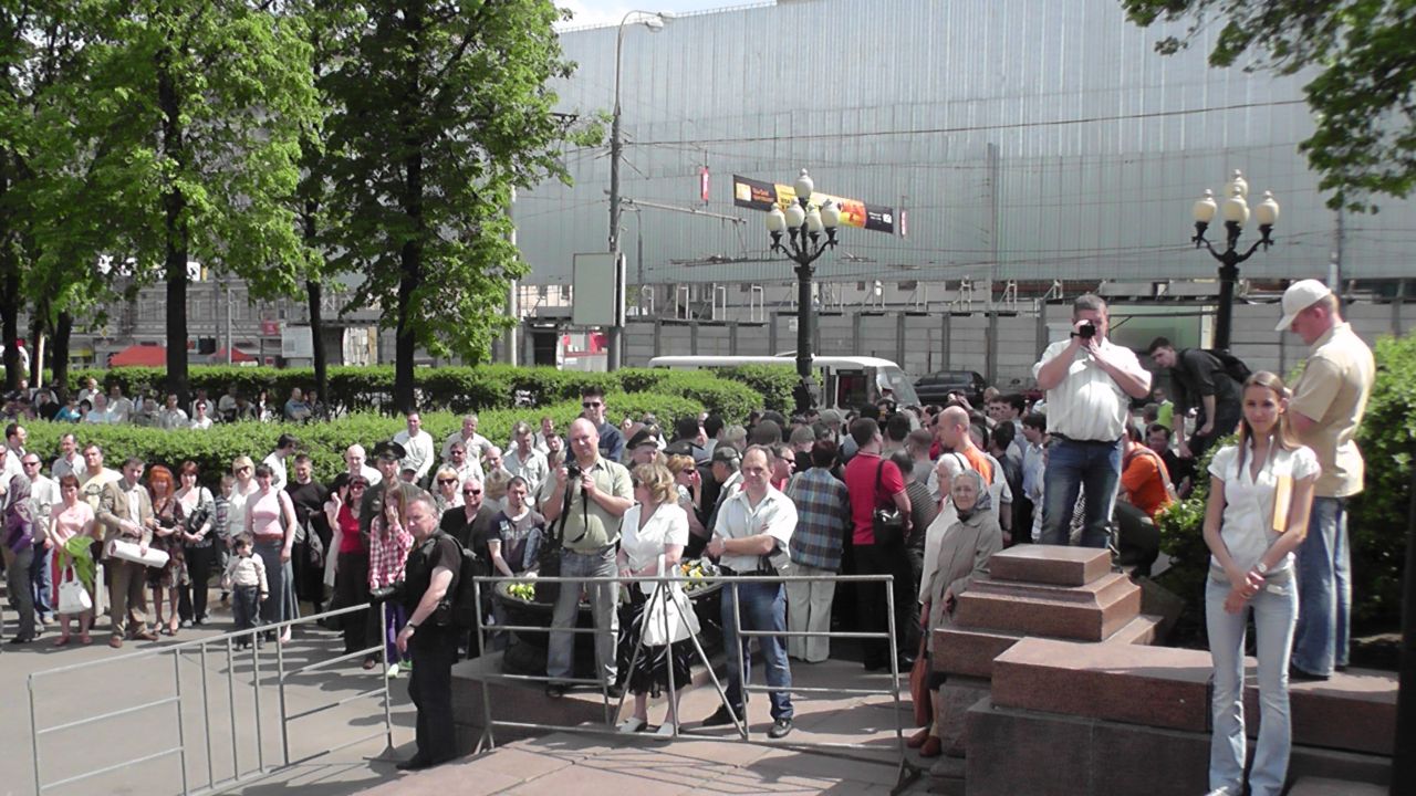 Сценарий примерно одинаков, да и количество народа тоже, как и на Поклонной горе с десантниками. Когда Гудков старший спустился после речи, рядом бабулька стояла, говорит ему-ну что сам пристроился и сынка пристроил.Тот заулыбался. Гудков, Геннадий Владимирович. Бабулька ко мне поворачивается, говорит- что столько лбов здоровых не можете на квартиру заработать, стоите тут клянчите. Я тоже заулыбался.