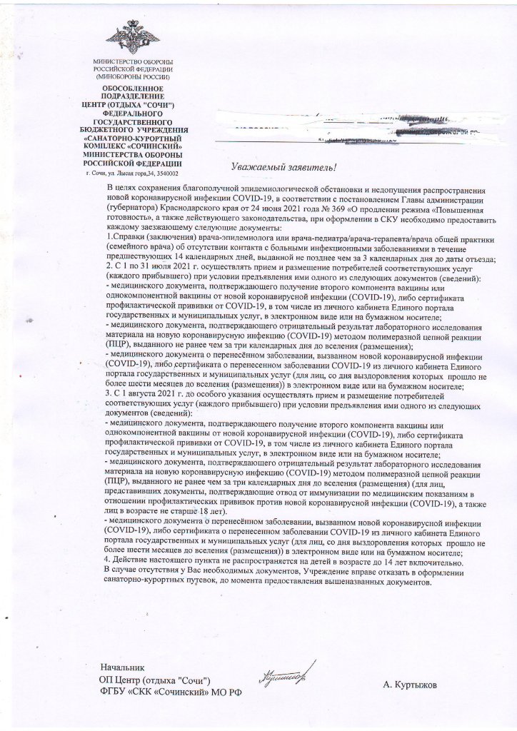 Вон в СКК Сочинский ВСЕ санатории рассылают дополнительные требования с предоставлением справки об отсутствии контактов с ИНФЕКЦИОННЫМИ!