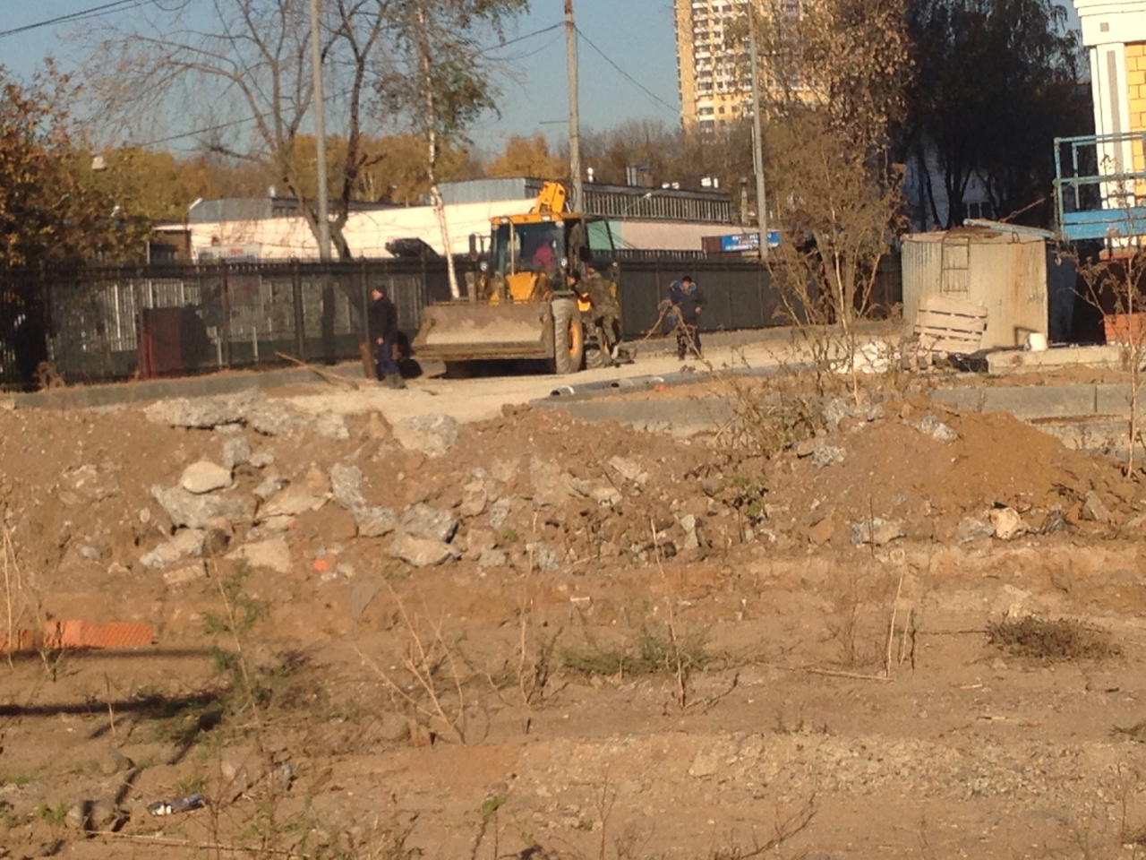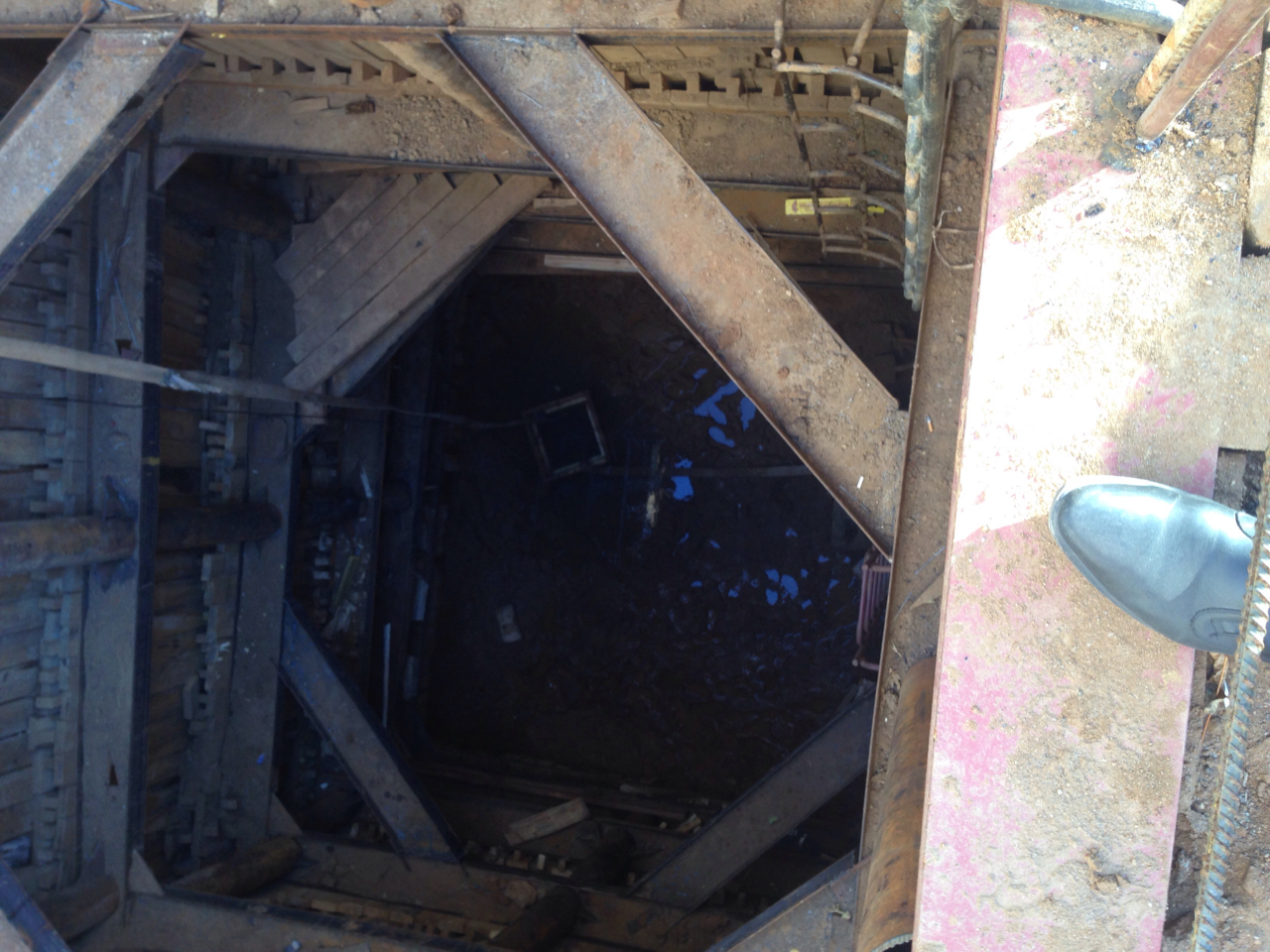 Инжстрой работает, копают два колодца у 24 корпуса, перфоратор работает- прошли 6 метров, расширяют квадратный колодец у 19 корпуса. Обрезали трубу в колодце соединения между 19,20 корпусами.