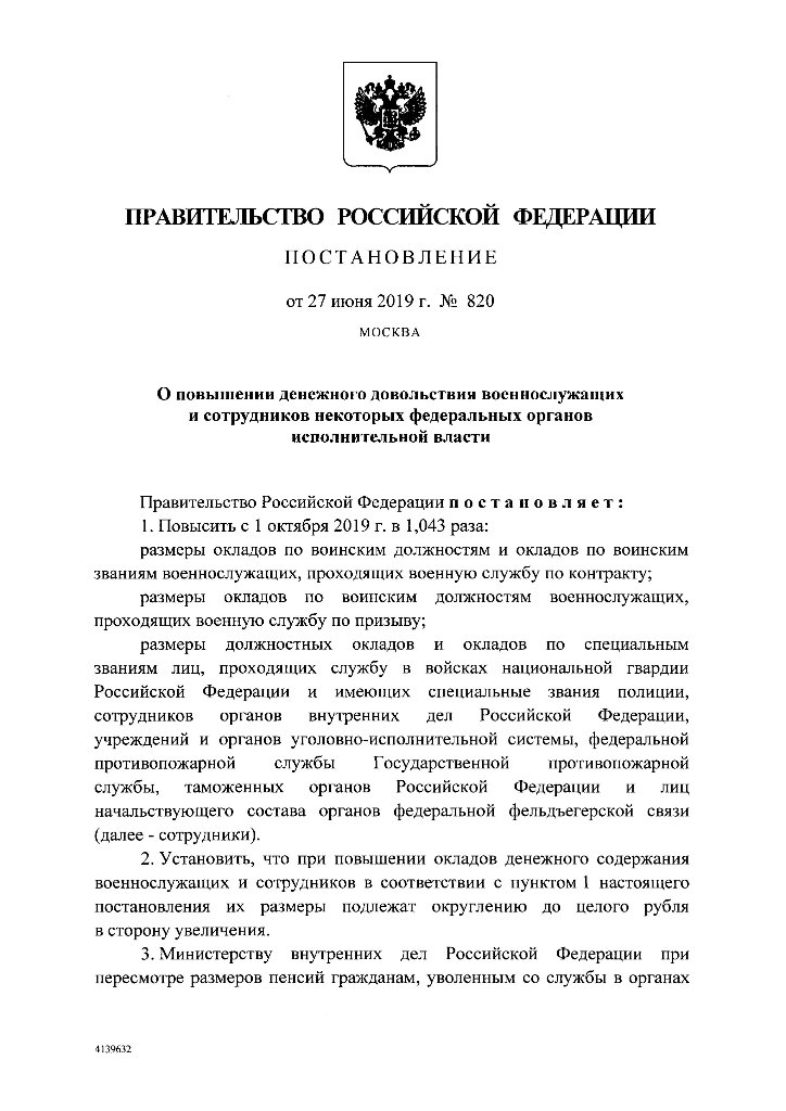 "О повышении денежного довольствия военнослужащих и сотрудников некоторых федеральных органов исполнительной власти"
