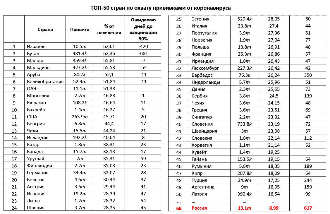 #1745Путин недоволен ходом вакцинации. Россия выглядит хуже большинства стран мира.