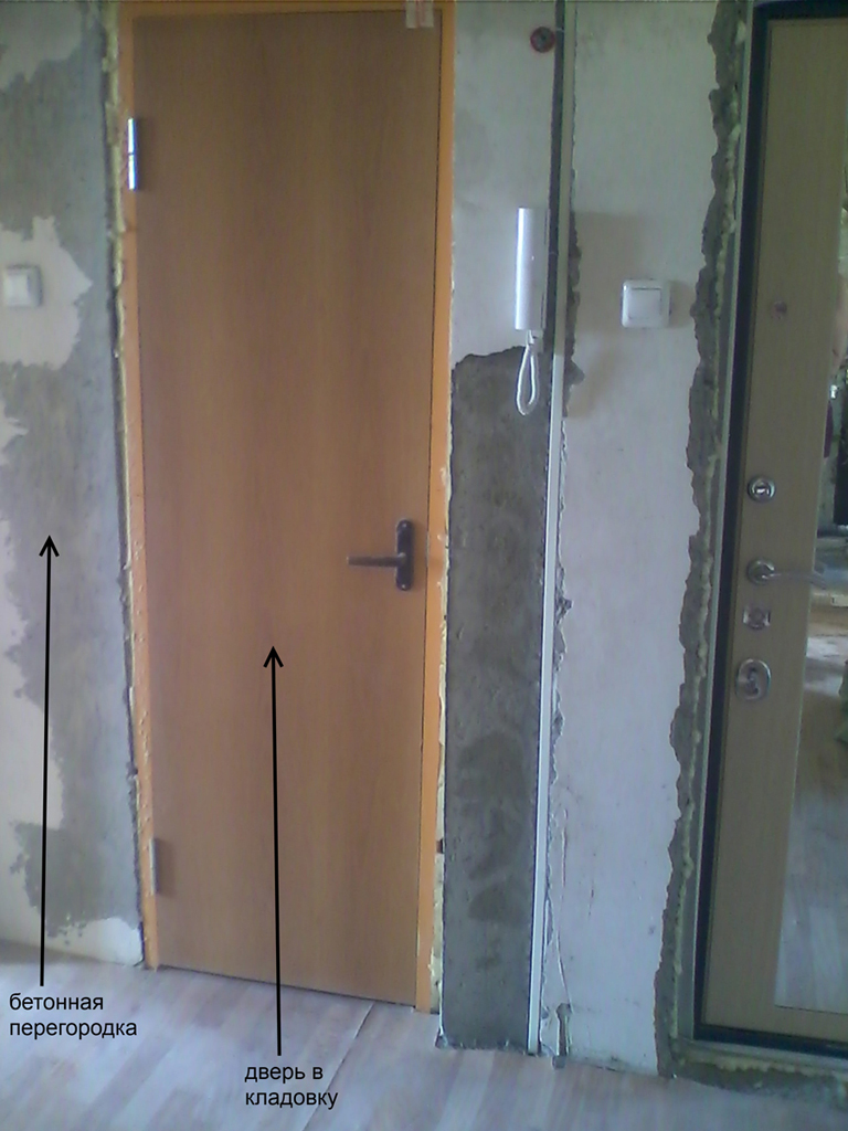 #1782У меня жена хочет гардеробную для верхней одежды и обуви сделать... Пока еще окончательно не решили, но думаю так и сделаем.Расскажите, пожалуйста, у кого какие практические решения или соображения по поводу кладовки, расположенной в прихожей (2-х комнатная квартира) !