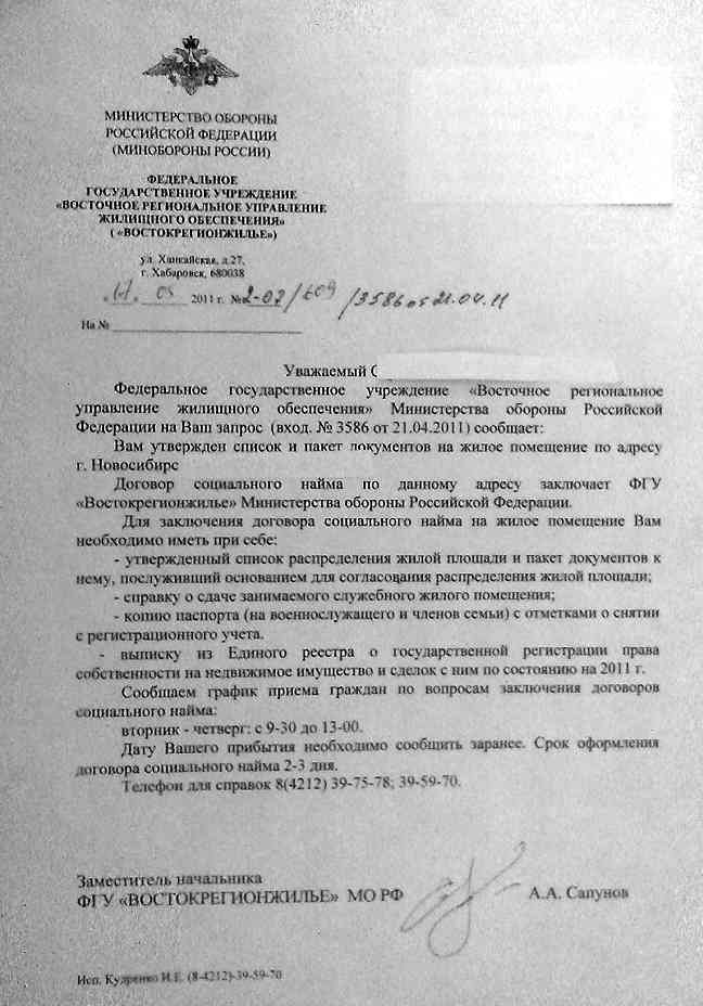 Не могу найти какие доки надо представлять в РУЖО для заключения ДСН. Я сейчас проживаю в служебке. Доки по извещению сдал.( по 1280 и № 205-2-373). Если я правильно понял я должен буду как только получу телеграмму из РУЖО приехать заключить ДСН- сдать служебку ( живу не в ЗАТО), и с актом о сдаче, выпиской из лицевого счета (что полностью расчитался-долгов нет) чистыми паспортами(выписаны) всех членов семьи (?)) ехать в РУЖО ??? Если кто в курсах-подтвердите, правильно мыслю али нет.И сколько на это отводится времени. Вселяться без ДСН не намерен