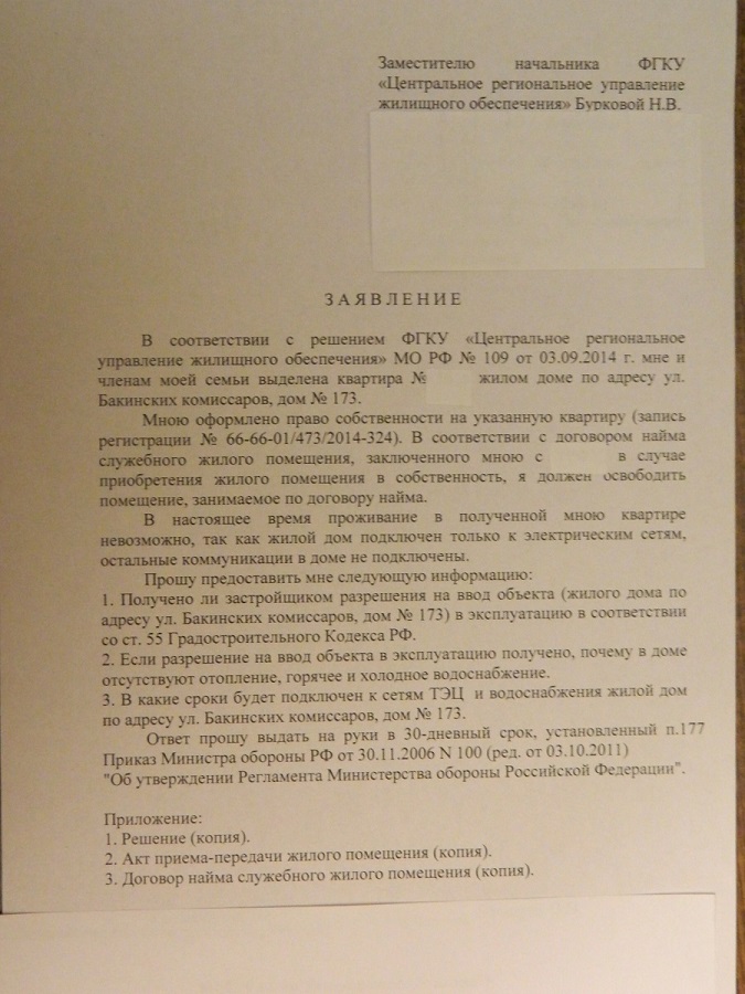 "Доводы заявителя о том, что дом 173 по улице Бакинских комиссаров в городе Екатеринбурге не готово к заселению, так как в нем нет воды, света, тепла, не работают лифты, не может повлиять на принятое судом решение, поскольку данные обстоятельства правового значения для данного дела не имеют…