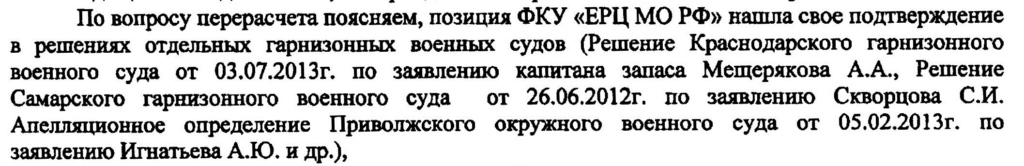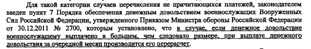 Что касается "перерасчета" то такого термина в законодательстве с четким определением не имеется, а толковые словари трактуют данное слово так: расчет произведенный заново, по новым основаниям. Основанием для изменения состава и размеров денежного довольствия являются приказы соответствующих командиров (начальников), которых на включение в расчет денежного довольствия за конкретный месяц сумм ранее выплаченных по халатности должностных лиц ЕРЦ и ГУК не издавалось.