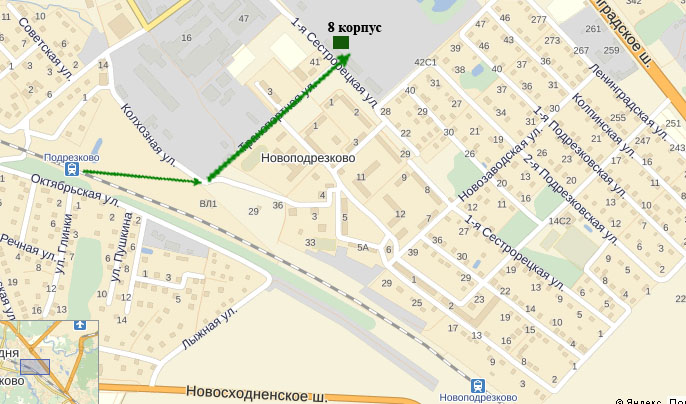 Знак, мне показалось, что лучше ехать до пл.Подрезково. Там буквально один поворот и по Транспортной улице прямо к 8 корпусу можно выйти.