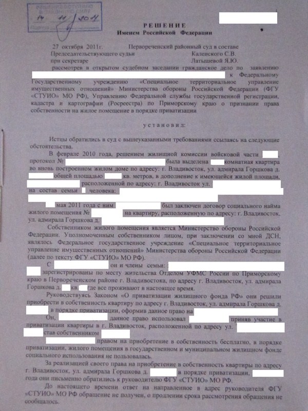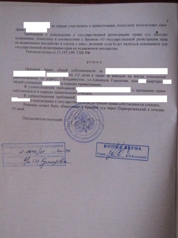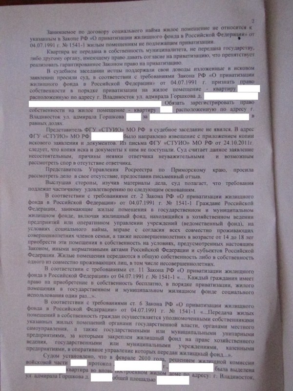 Выкладываю ссылку на решение Первореченского райсуда Владивостока, можно нормально прочитать. Приватизация через суд намного вероятнее!!