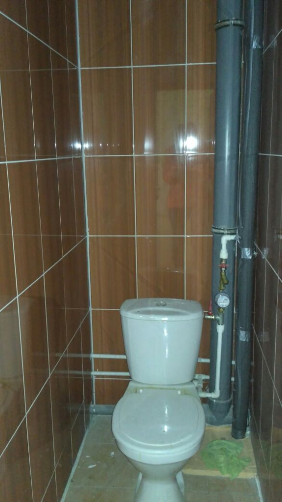 - кафель в ванной , туалете и по стене на кухне. Темный, смотрится хорошо, понравился;