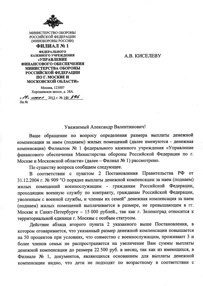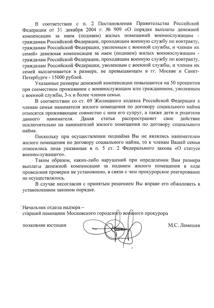 Почитал, но там конкретно про жилищное обеспечение применять ЖК, у суда есть право маневра, что это денежная компенсация (типа отделять мух от котлет). Как в этом случае -