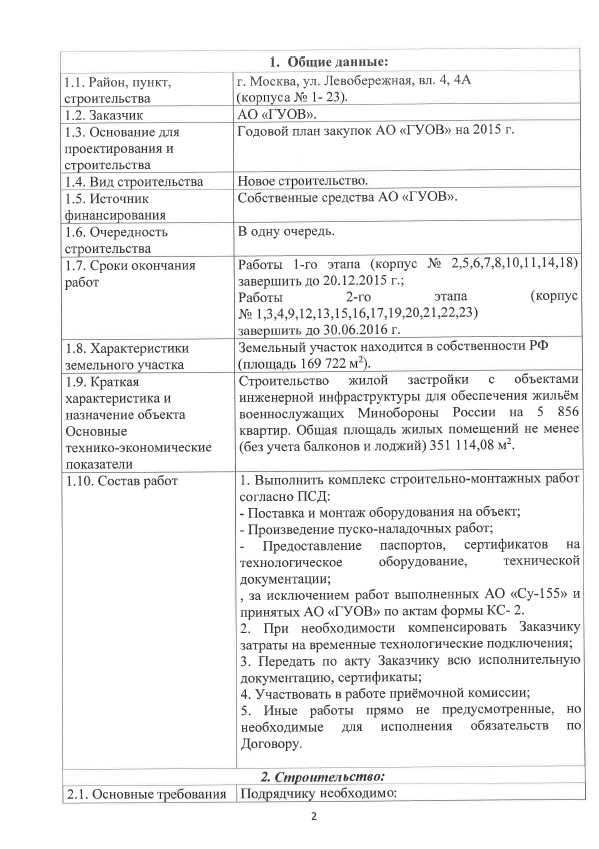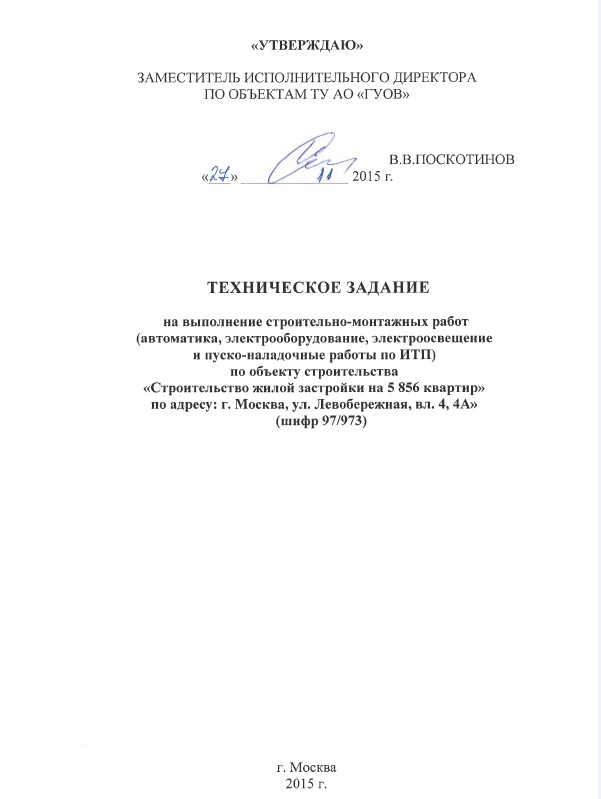 Проведение закупки у единственного поставщика среди субъектов малого и среднего предпринимательства на выполнение строительно-монтажных работ (автоматика, электрооборудование, электроосвещение и пуско-наладочные работы по ИТП) по объекту строительства «Строительство жилой застройки на 5 856 квартир» по адресу: г. Москва, ул. Левобережная, вл. 4, 4А (шифр 97/973)