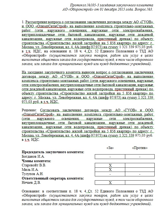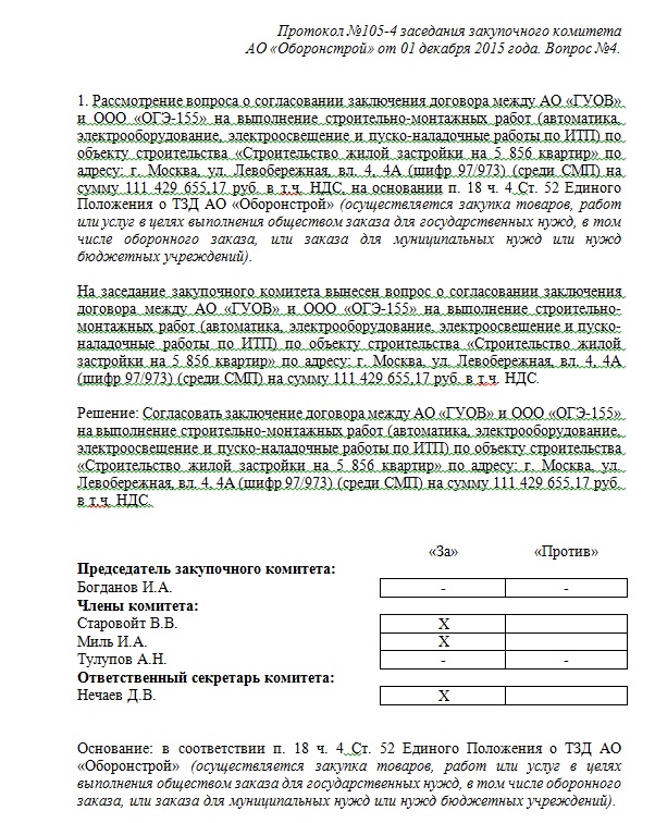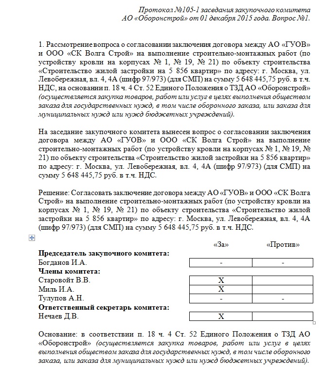 "проведении закупки у единственного поставщика среди субъектов малого и среднего предпринимательства на выполнение строительно-монтажных работ (по устройству кровли на корпусах № 1, № 19, № 21) по объекту строительства «Строительство жилой застройки на 5 856 квартир» по адресу: г. Москва, ул. Левобережная, вл. 4, 4А (шифр 97/973)"