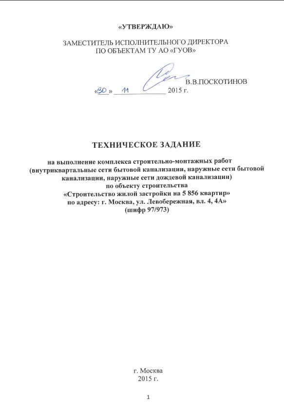 #18728Проведение закупки у единственного поставщика на выполнение комплекса строительно-монтажных работ (внутриквартальные сети бытовой канализации, наружные сети бытовой канализации, наружные сети дождевой канализации) по объекту строительства "Строительство жилой застройки на 5 856 квартир" по адресу: г.Москва, ул.Левобережная, вл. 4, 4А" (шифр 97/973)
