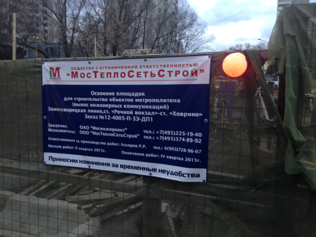 Врезаемся в районе светофора. Работы по переносу и защите канализации и водостока в районе пересечения с стволами метро продолжаются срок у них до марта 2016 года.