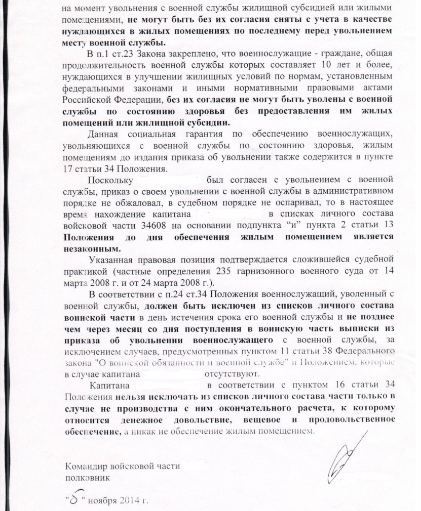В приложении позиция командования по такому вопросу, поддержанная ГУ ГШ ( представленная в суд по факту увольнения в\сл. после длительного содержания в списках личного состава)