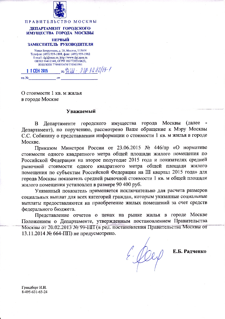 4. Неплохо опровергнуть вывод о взаимозаменяемости ЖС и ЖП в Москве, взяв справку о рыночной стоимости метра в Мск.