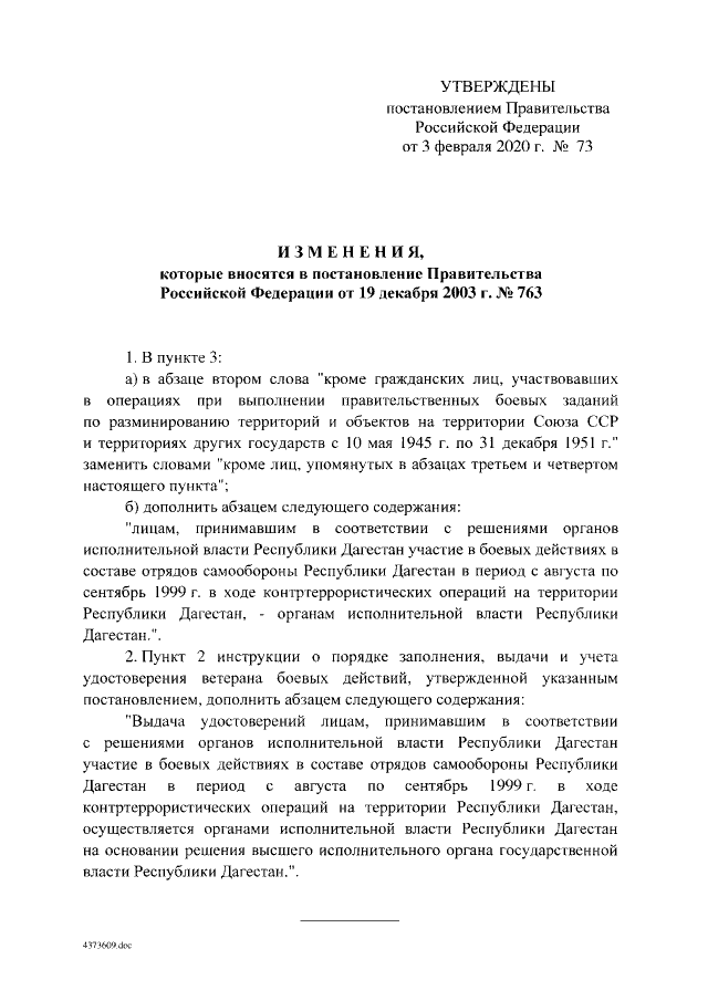 #1970Постановление Правительства Российской Федерации от 03.02.2020 № 73